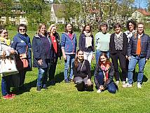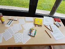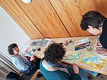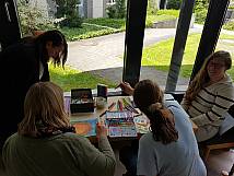 Teilnehmerinnen mit Unterstützung von der Teilnehmerin Anja Schnell u.a. kreativ mit