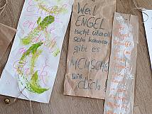 Dabei wurde kreativ und intuitiv an Engelgedichten, Zitaten und biblischen Szenen gearbeitet und eigene Texte, Bilder und Wettergramme geschaffen, die dann bei einem Spaziergang im Klostergarten der Natur und den Besuchern überlassen wurde. Ein Höhepunkt war schließlich der Vortrag von Prof. Dr. Christoph Müller, der die "engelischen Fäden" der Bibel unterhaltsam zusammenführte. Ebenso boten die Oasentage Zeit für Einkehr in der Klosterkirche, Lobpreis und Gebet und für unsere ganz eigenen Bedürfnisse und Spuren. Für die Meisten ging es dann weiter mit dem Schuljahresendspurt. Zum Glück gut erholt, gestärkt und neu inspiriert!