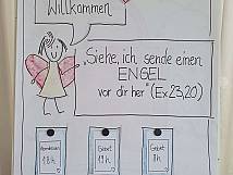 Dabei wurde kreativ und intuitiv an Engelgedichten, Zitaten und biblischen Szenen gearbeitet und eigene Texte, Bilder und Wettergramme geschaffen, die dann bei einem Spaziergang im Klostergarten der Natur und den Besuchern überlassen wurde. Ein Höhepunkt war schließlich der Vortrag von Prof. Dr. Christoph Müller, der die "engelischen Fäden" der Bibel unterhaltsam zusammenführte. Ebenso boten die Oasentage Zeit für Einkehr in der Klosterkirche, Lobpreis und Gebet und für unsere ganz eigenen Bedürfnisse und Spuren. Für die Meisten ging es dann weiter mit dem Schuljahresendspurt. Zum Glück gut erholt, gestärkt und neu inspiriert!